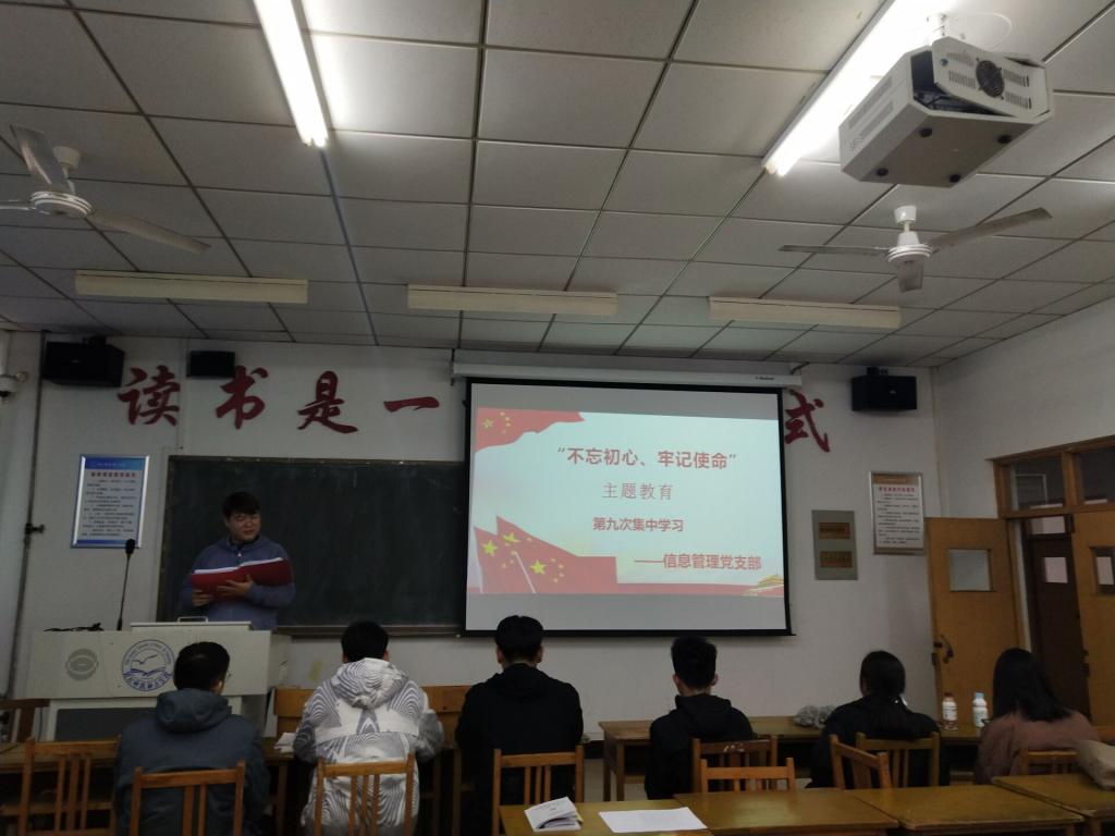 伟德国际bevictor信息管理党支部于2019年11月21日在逸夫楼A510进行了“不忘初心,牢记使命”主题教育第九次集体学习。