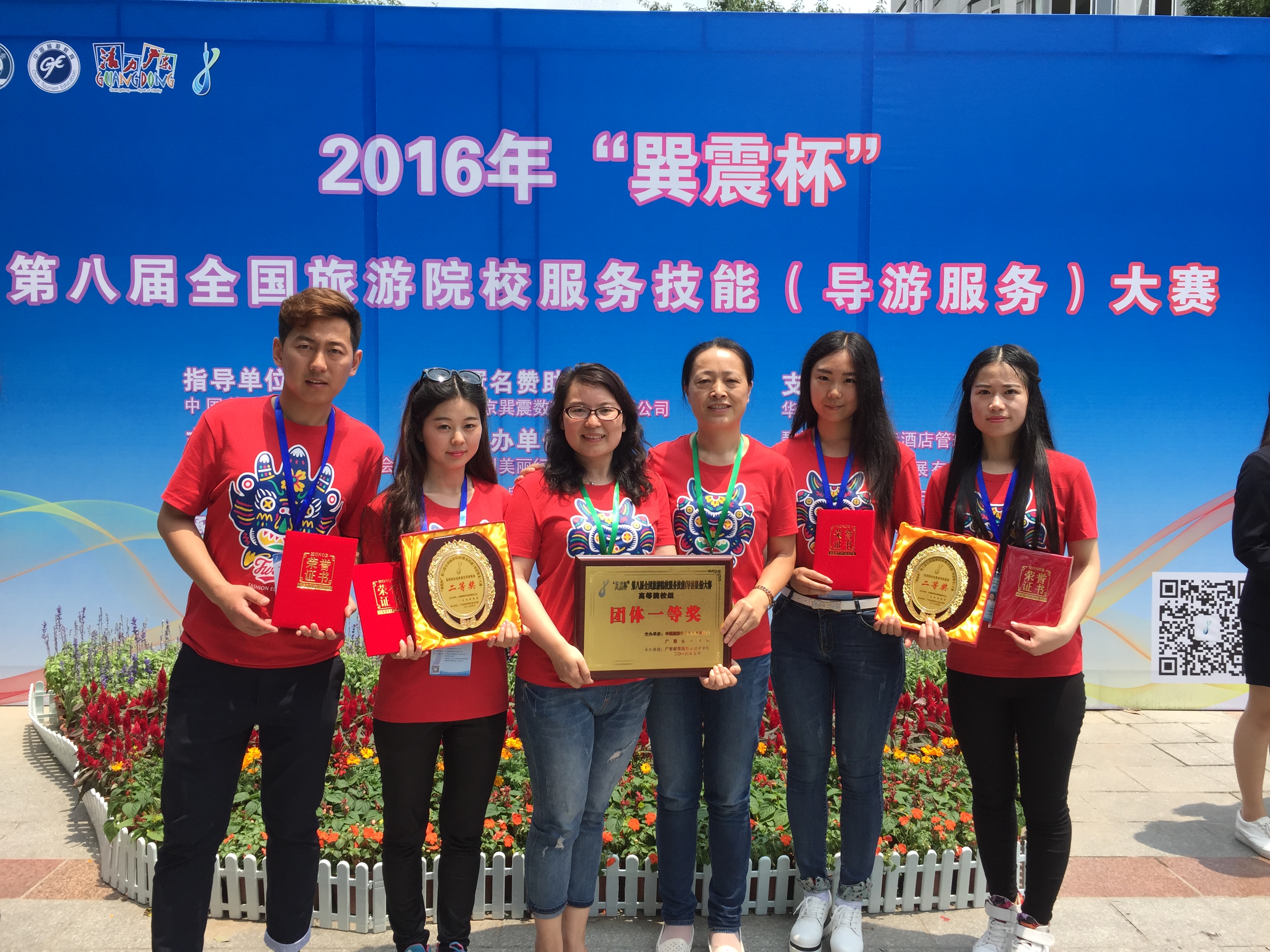 2016年5月15日,伟德国际bevictor师生在广州参加第八届全国旅游院校服务技能(导游服务)大赛,为公司赢得团体一等奖,参赛员工获得两项二等奖和两项三等奖。