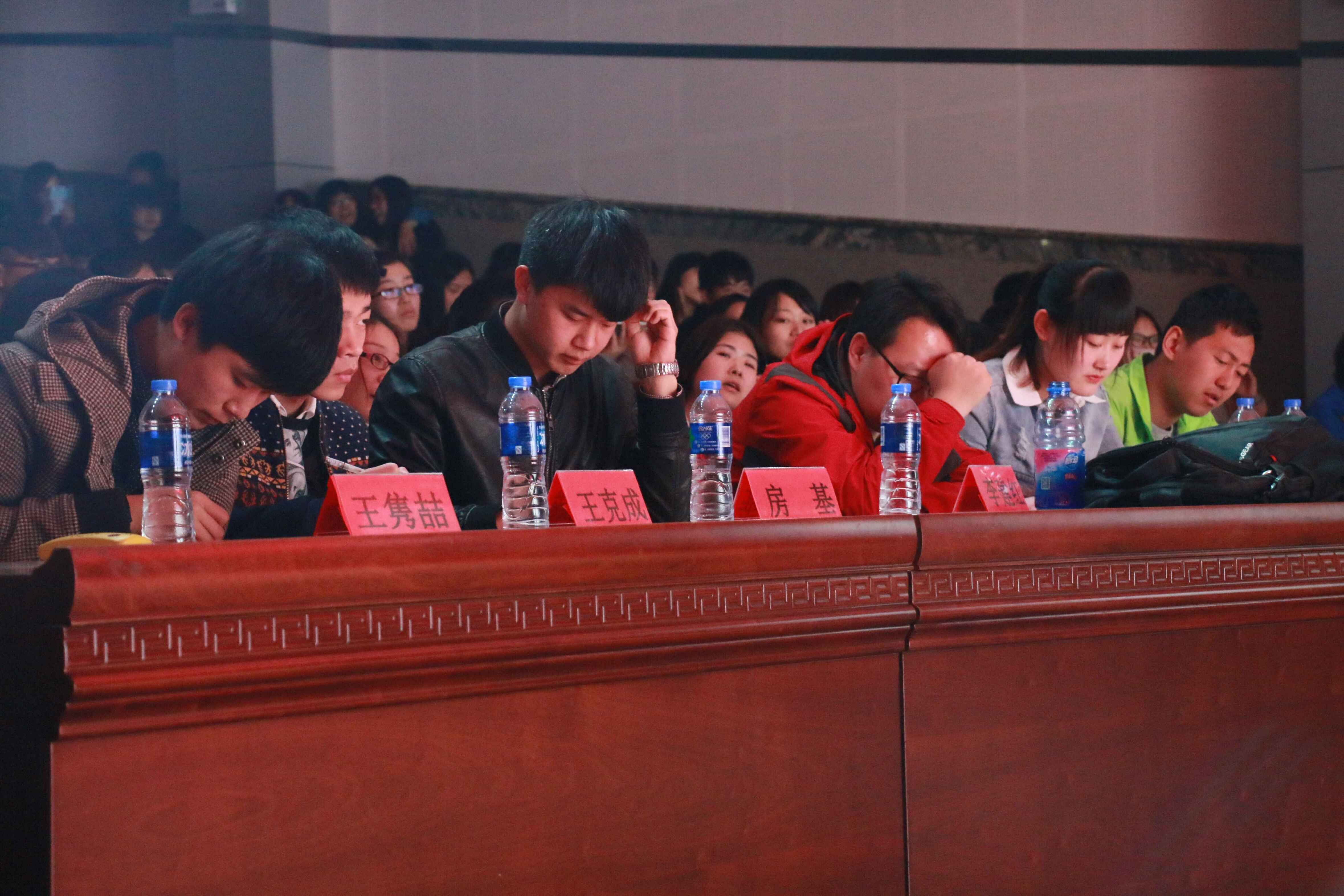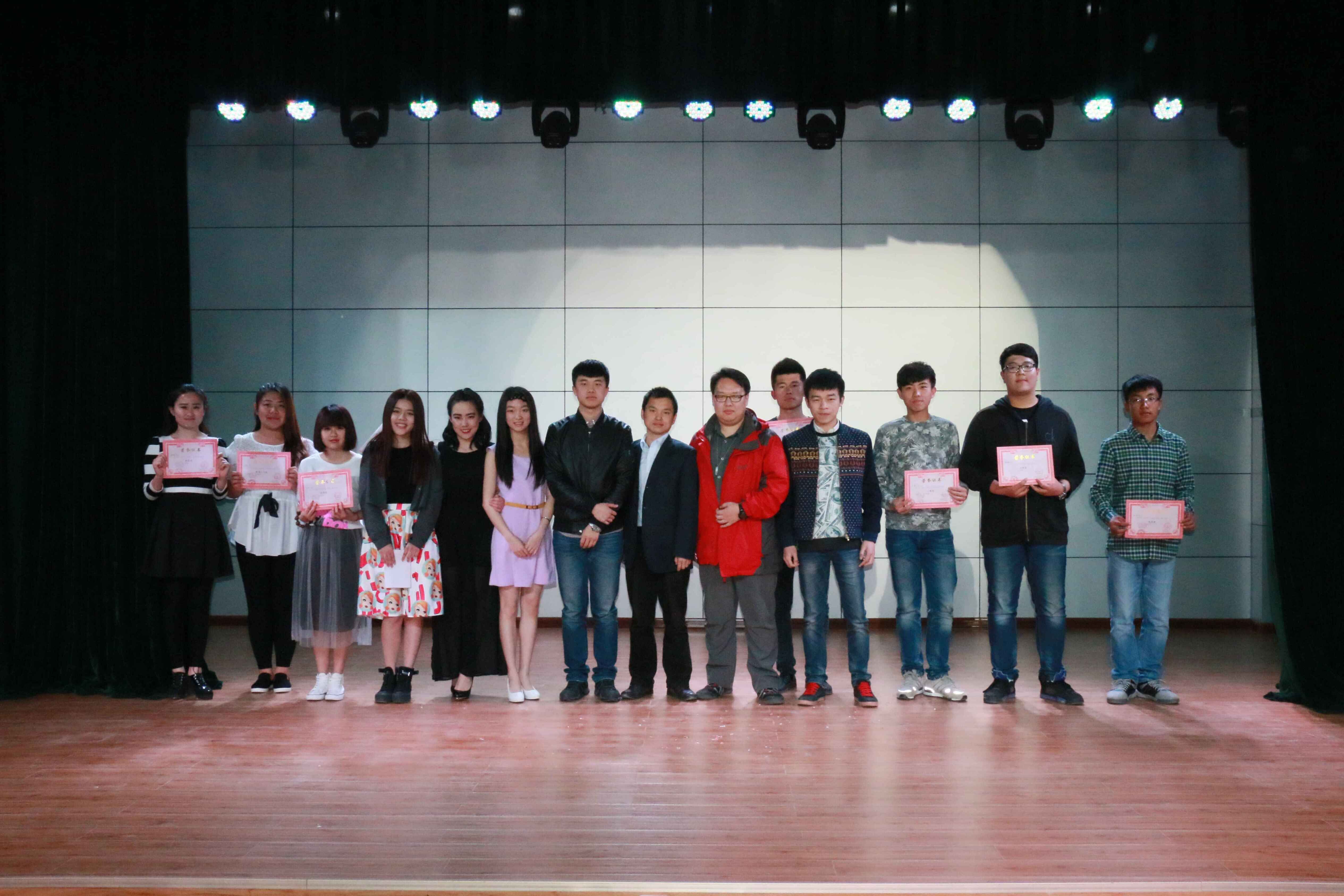 进入此次决赛有于佳欣 、张领、何思宜、黄旭鹏、曲文辉、高丽昆、王梦瑶、薛静、王麒、曹英杰十位选手。深绿色帷幕下的神秘感,缓缓掀开。砰砰砰的心跳声,一段活泼视频,让同学们目睹了选手们在舞台下的另一面。视频过后,十位选手闪亮登台。自我介绍之后,主持人宣布比赛开始。本次比赛共分三轮,第一轮为个人展示,这是选手自己的舞台,灵动的展现自己的个性,可谓淋漓尽致;第二轮是选手之间合作与竞争结合,默契的配合赛出谁更胜一筹。两轮赛后,曹英杰、王麒、薛静、王梦瑶、曲文辉五名选手晋级第三轮比赛。第三轮为决胜环节,那如心的抒情歌,那活泼的动感歌,那寻味的经典歌,声声入耳,深入人心。演唱完毕,房基学长进行点评,一语中的。最后,主持人公布成绩,荣获优秀奖的是黄旭鹏,曲文辉,张领,何思宜,于佳欣和高丽昆,最佳人气奖是王梦瑶,荣获三等奖的是薛静,二等奖的是王麒,曹英杰则荣获一等奖,此次比赛在老师与选手们愉快的合影下圆满结束。
